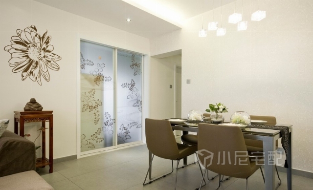 餐廳沿襲客廳的風(fēng)格,搭配鮮花,更有生活的味道。