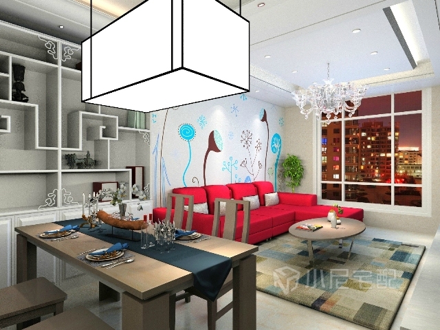 獨特風格的電視主墻,并以粗礦作為設計主基調(diào)。