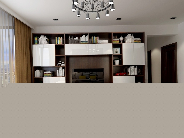 電視背景墻與沙發(fā)背景墻,沙發(fā)與地面的色調(diào)融于一體,使整個居室更有畫面感