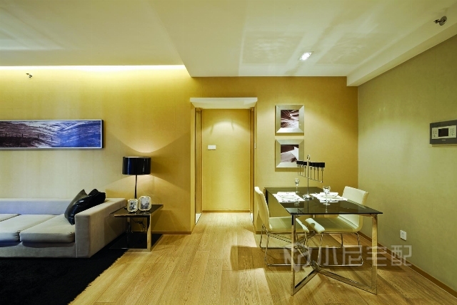 當簡練而硬朗的板式家具撞上鮮艷多姿的裝飾風格凸顯出客戶時尚而簡單的生活理念。家裝家具一體價19.6萬.