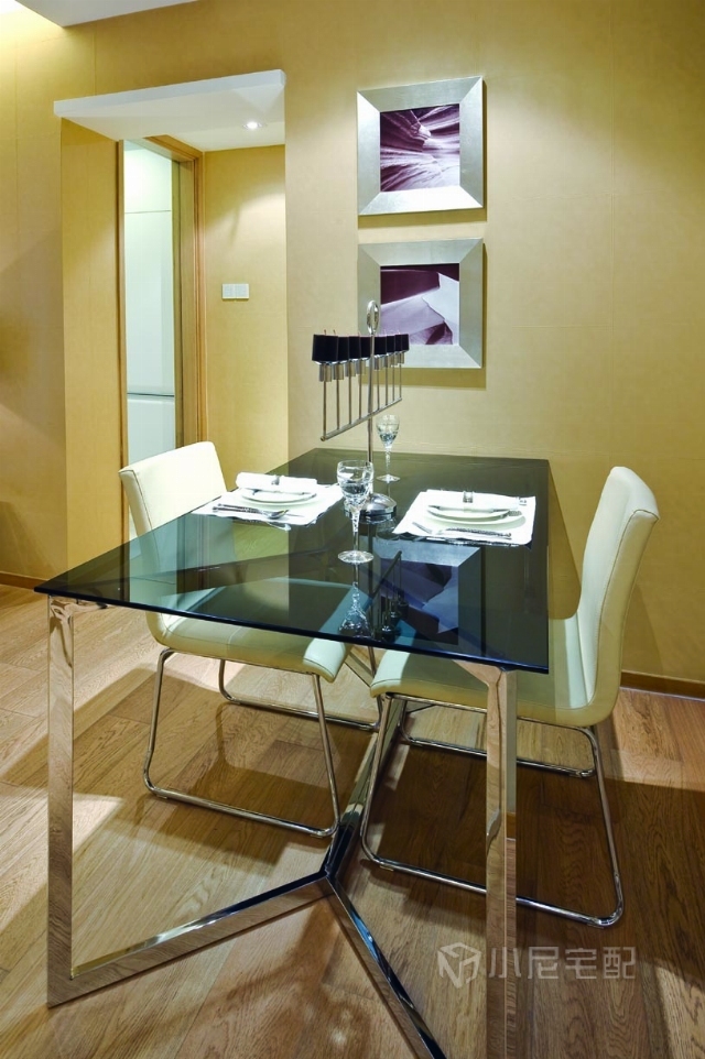 黑色烤漆玻璃餐桌增添了時尚感。