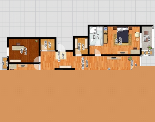 鋪設淺色木地板,選用個深色家具穩(wěn)定空間。