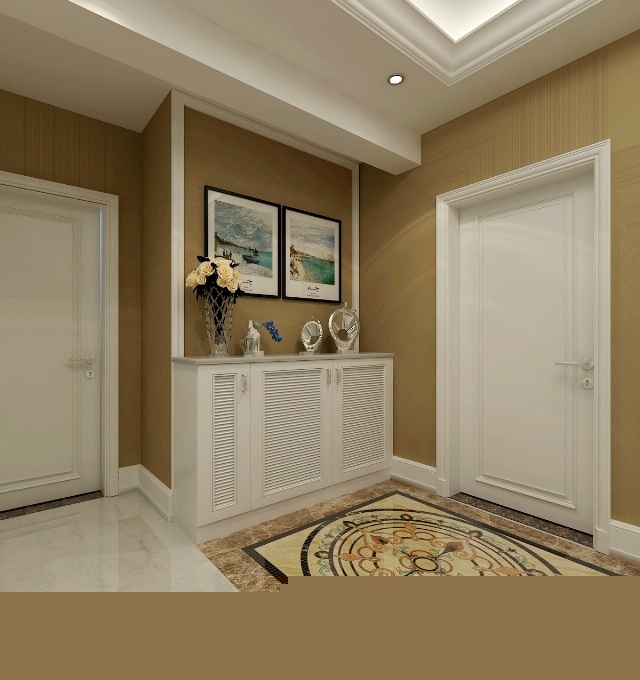 合理的利用了入戶墻面 百葉扇的鞋柜造型 配合了整體空間的搭配,也很好的有了儲物功能