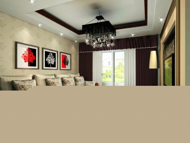 暖色的壁紙搭配白色的沙發(fā),深色窗簾,體現(xiàn)客廳的舒適性