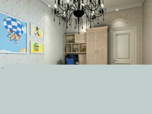 暖白橡的木色家具搭配印花壁紙給孩子一種溫暖的感覺