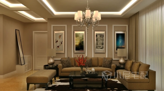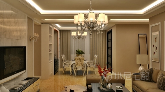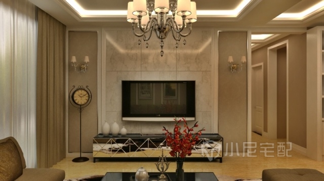 客廳一派優(yōu)雅恬適,電視背墻以大理石來演繹貴氣。