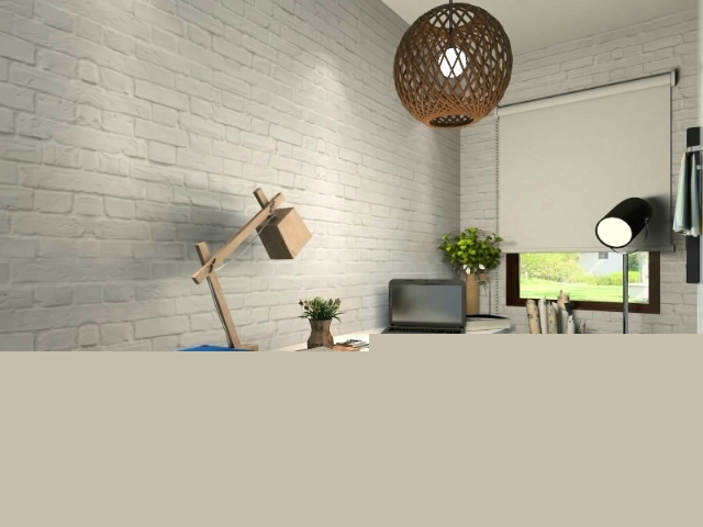 仿磚壁紙,拉絲吊燈,一個專業(yè)的工作空間誕生。