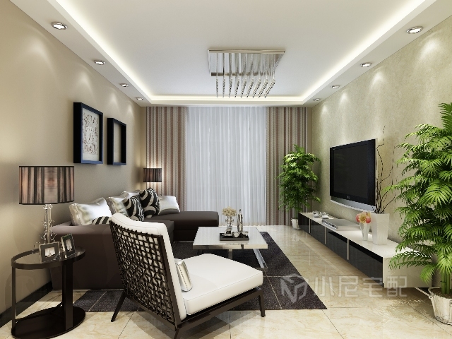 這個(gè)居室整體采用中性色調(diào),大氣又不失靚麗,給令人眼前一亮的感覺(jué)。