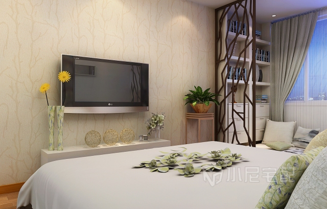 潔白帶有凹凸感的壁紙,使得單一的墻面富于變化,金絲胡桃色的床和床頭柜整體統(tǒng)一,大氣沉穩(wěn),返璞歸真。