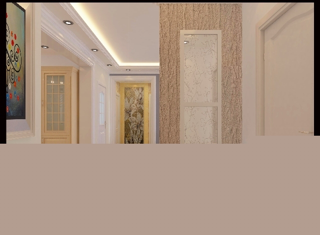 客廳電視背景墻采用硅藻泥設(shè)計(jì)結(jié)合雕花玻璃的拼框設(shè)計(jì),使用空間與美感相結(jié)合