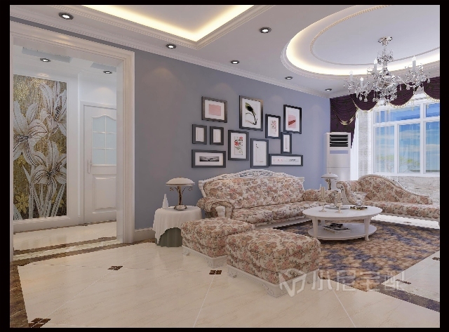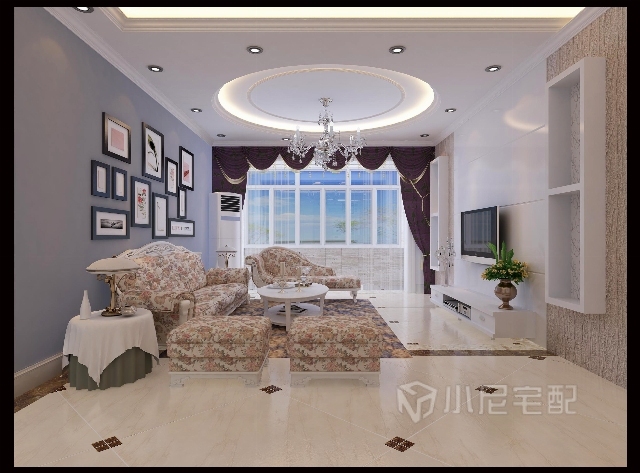 客廳吊頂以圓形為基準(zhǔn),采用歐式線條顯示其美感