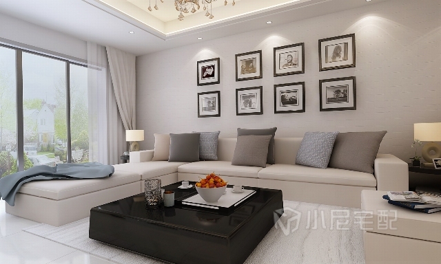 白色的沙發(fā),黑色的茶幾使整個(gè)客廳顯得沉穩(wěn)大氣,個(gè)性的裝飾畫與整個(gè)空間融合統(tǒng)一。