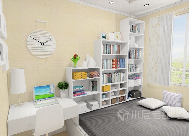 榻榻米的書房,豐富的儲(chǔ)物空間,書架、書桌,既是書房又是臥室,
