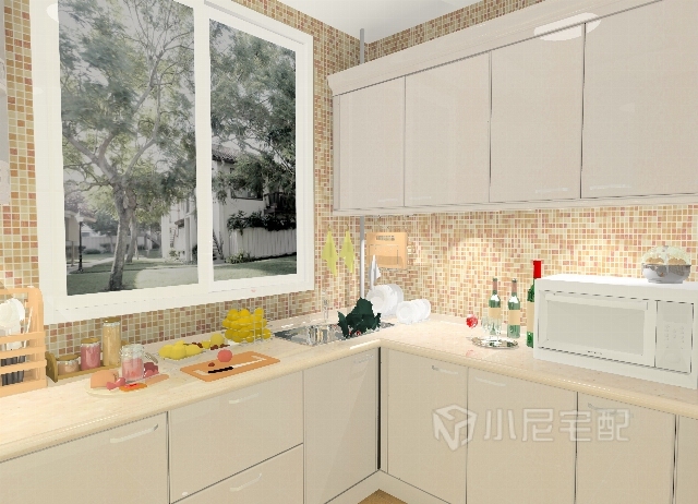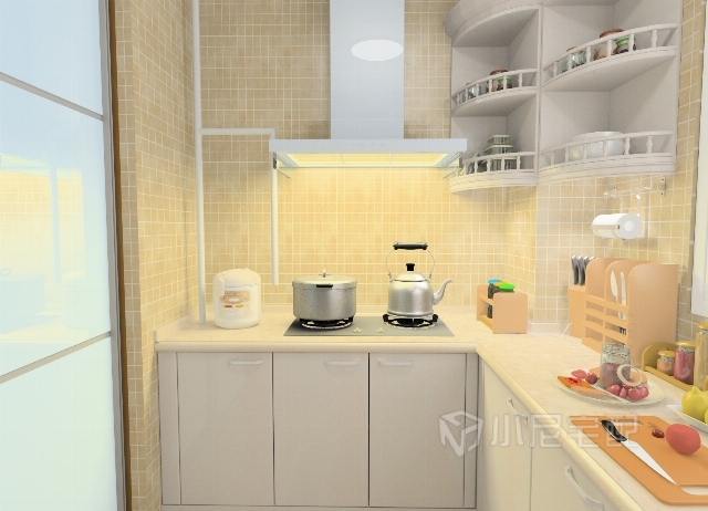 U字形廚房,色調(diào)溫馨,布局合理