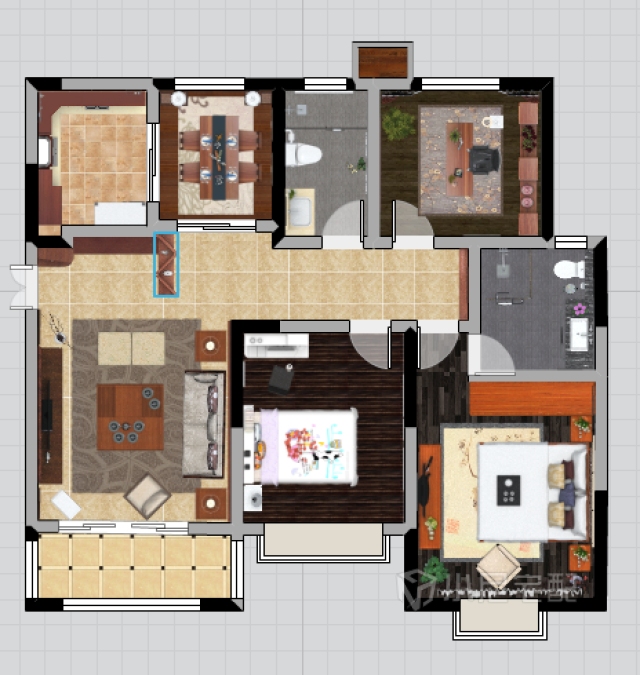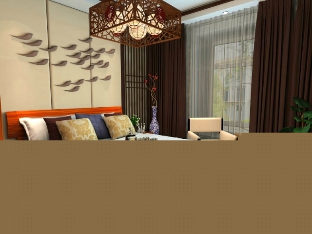 臥室與整體風(fēng)格相統(tǒng)一,大方,簡潔,不失特色。