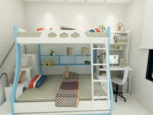 兒童房倍顯童趣,雙人床旁邊搭配書(shū)桌,供孩子學(xué)習(xí)