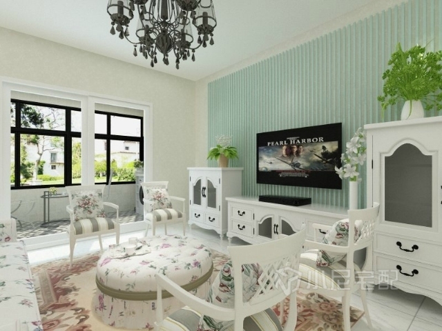 美式田園風(fēng)格的客廳是寬敞而富有浪漫氣息的