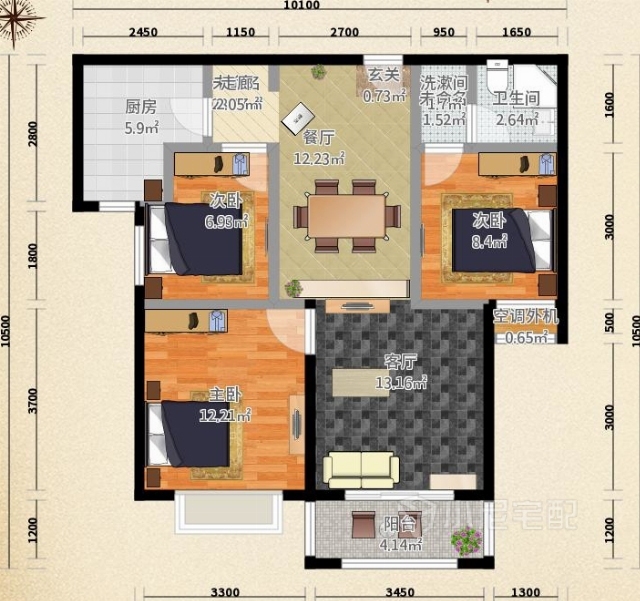 充滿了家的幸福,留給年輕一代和父母一代同住的需要,這樣還是完整的家。