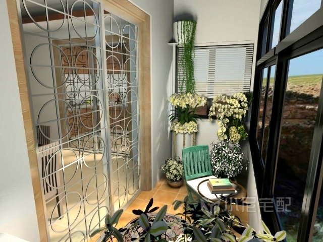 陽(yáng)臺(tái)有很多植物,看看書(shū)聊聊天看看外面人來(lái)人往