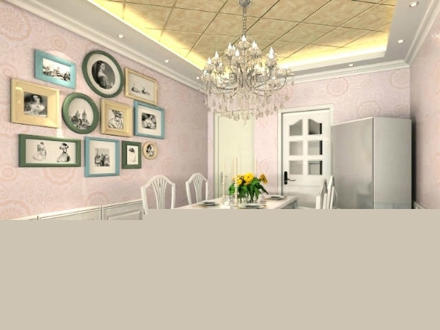 把帶有田園風(fēng)格的餐桌和簡約而不單調(diào)的壁紙采用混搭,使用照片墻裝飾,餐廳不是簡簡單單的吃飯,而是一種溫馨而又暖意。