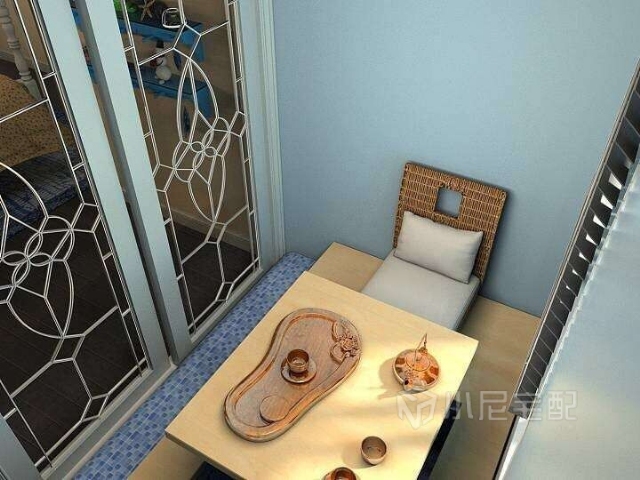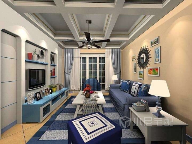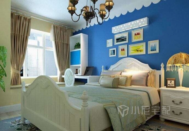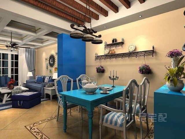 地中海風格的靈魂就是“蔚藍色的浪漫情懷,海天一色、艷陽高照的純美自然”。設計中添加咖色以中和色調,爛漫中不失沉穩(wěn)