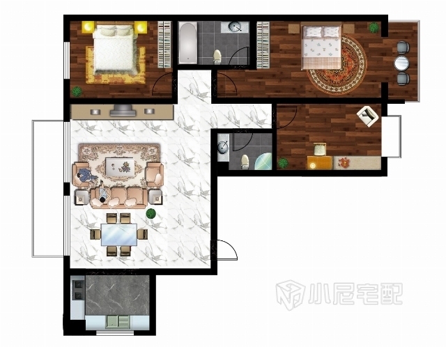 鮮艷的地毯記掛畫,增加了些許的藝術(shù)氣息。