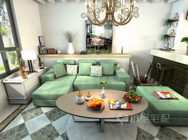 小尼宅配布藝沙發(fā)綠色搭配很到位,不似北歐的簡單,也讓這種混搭融合在空間中。