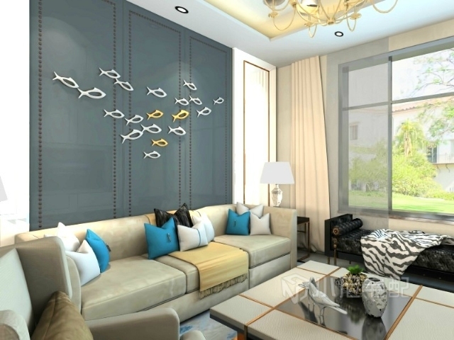 素色的沙發(fā),搭配幾個藍(lán)色的抱枕,更加的漂亮