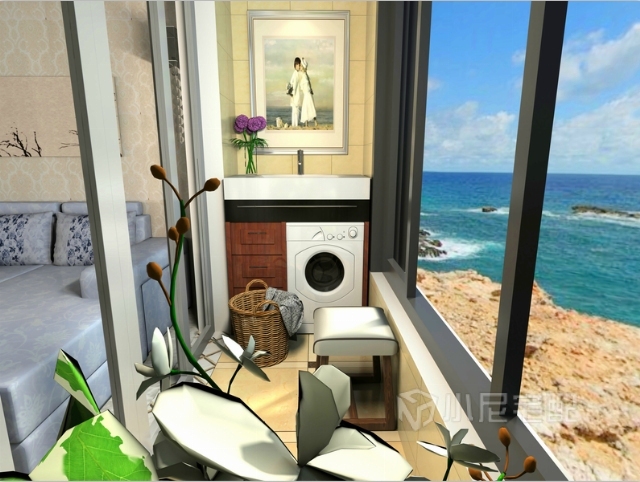 充滿了花香氣息,洗衣臺(tái)在那,靜靜等待中坐在板凳上望一望窗外