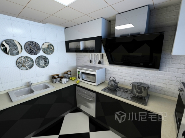 廚房儲物空間強(qiáng)大,黑色櫥柜,讓廚房變得整潔很穩(wěn)