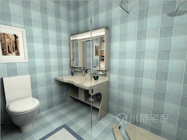 淋浴房用的是玻璃門,整體看上去清爽、整潔。