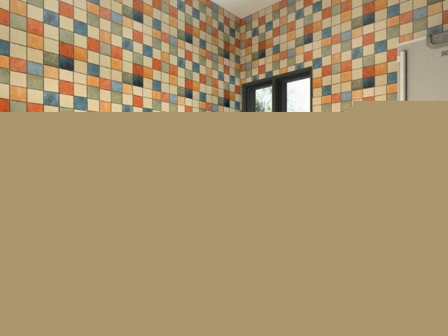 顏色豐富的墻磚和白色的櫥柜搭配,充滿活力。