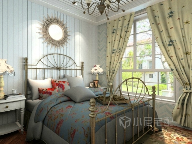 窗簾和床單相互照應(yīng)