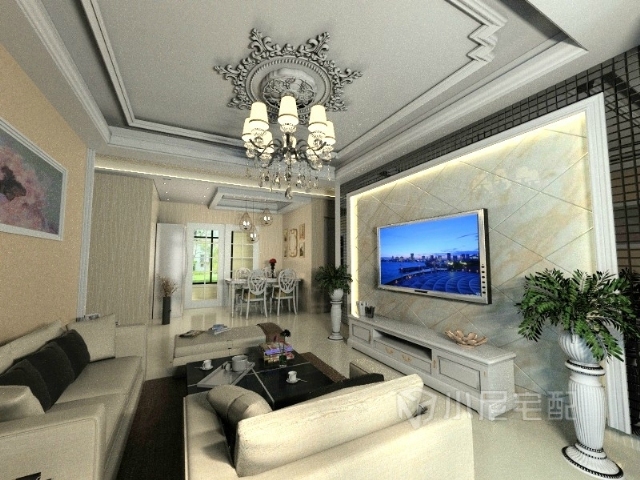 此戶型屬于小平房型,首先要合理運(yùn)用空間,客戶想做簡(jiǎn)歐風(fēng)格,由于空間的狹窄,用石膏線和有象征性的歐式裝飾物做裝點(diǎn) ,選用了條狀的米色壁紙,同時(shí)擁有歐式的效果和闊達(dá)的空間感。