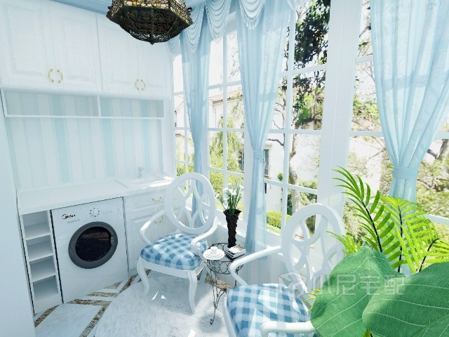 兩把座椅,通透的陽光灑進(jìn)來,身邊的洗衣機(jī)悠閑的轉(zhuǎn)動(dòng)著。慵懶的沐浴在陽光下,喝著咖啡,看看書,剛洗的衣物清新,生活如此愜意溫馨。