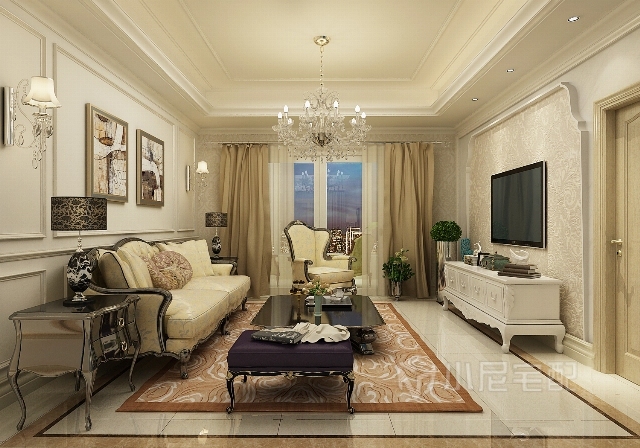 方正寬敞的客廳空間體現(xiàn)歐式風(fēng)情寬大舒適特點(diǎn)。