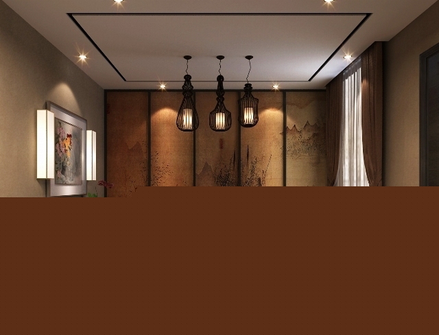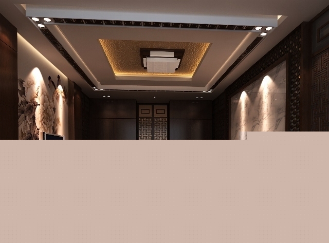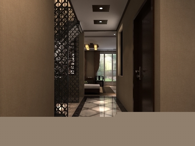 走廊是起連接空間作用的空間,本方案中,以現(xiàn)代的黑色材料制作出帶有古典風味的隔斷,現(xiàn)代的裝飾品給空間帶來新鮮的感覺,兩者的結(jié)合給人帶來一種別樣的風情。