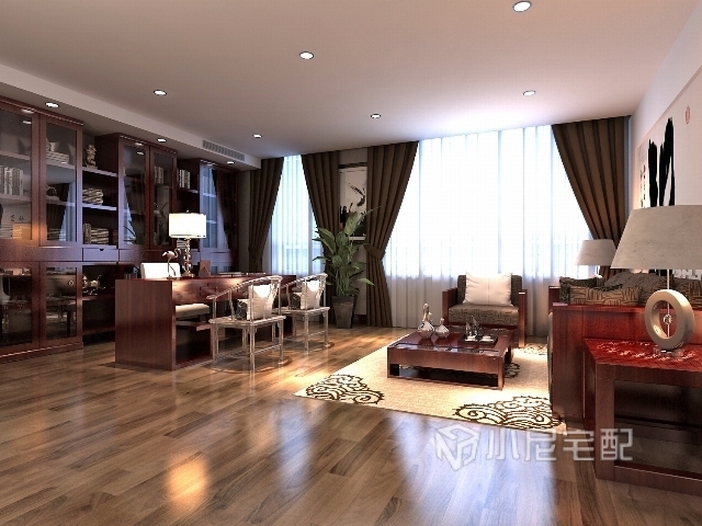 書房是學習工作的場所,純粹的中式風格在書房中會是以中稍微有些壓抑的純木色,但在本方案中,以中式風格為主的同時加入了現(xiàn)代的元素,在嚴肅的空間中帶著幾分的活潑?,F(xiàn)代風格的座椅給沉悶的空間帶來一絲的不安于現(xiàn)狀,幾欲脫離出來,但這樣的結(jié)合也使得書房的嚴肅、安靜,擁有了一絲活躍。