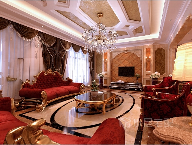 強(qiáng)調(diào)力度、變化和動(dòng)感,沙發(fā)華麗的布面與精致的雕刻互相配合,把高貴的造型與地面鋪飾融為一體,氣質(zhì)雍容。