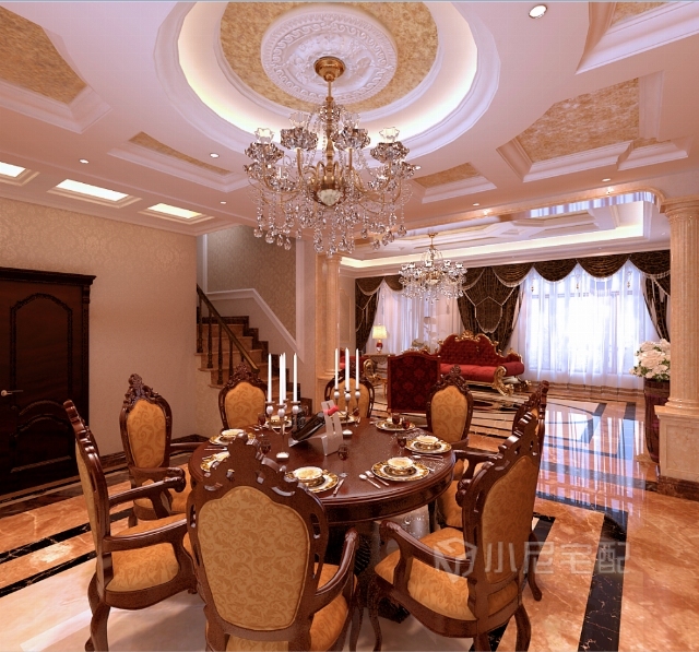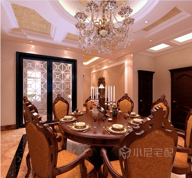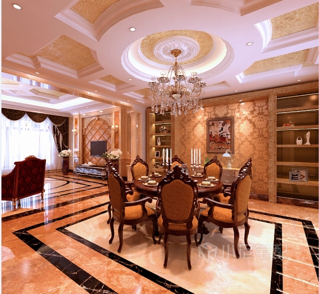 要讓歐式家具完全散發(fā)出其魅力,離不開配飾的襯托作用,壁紙、燈具、掛畫、地板、家紡用品等的運(yùn)用都恰到好處