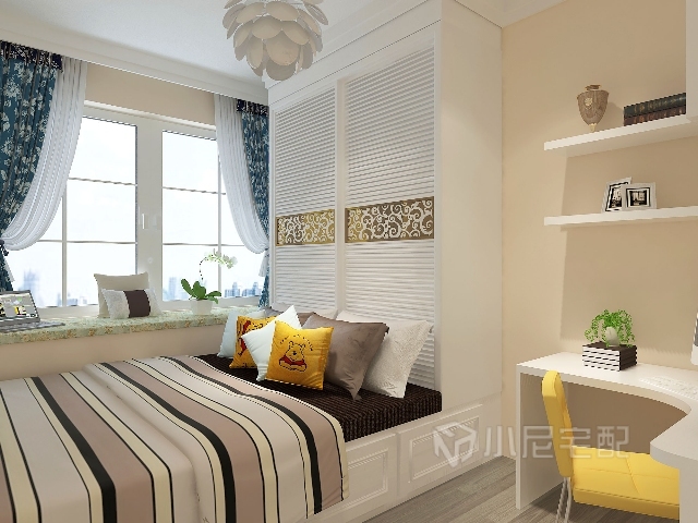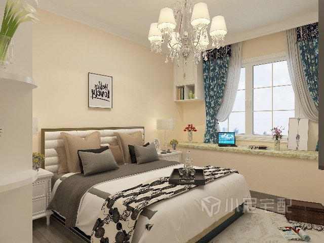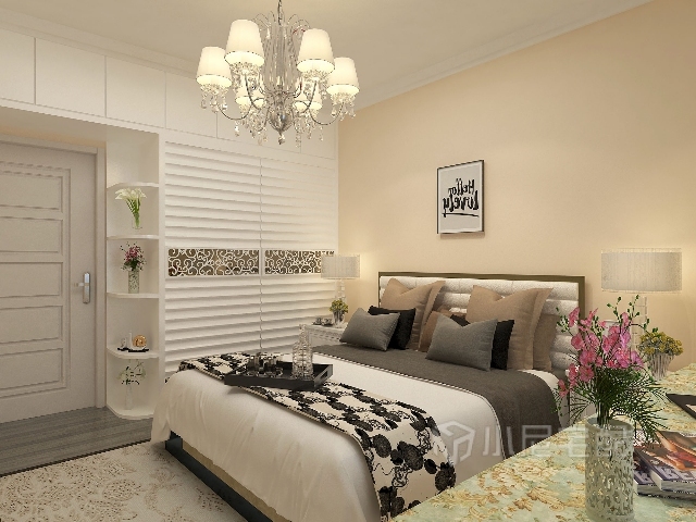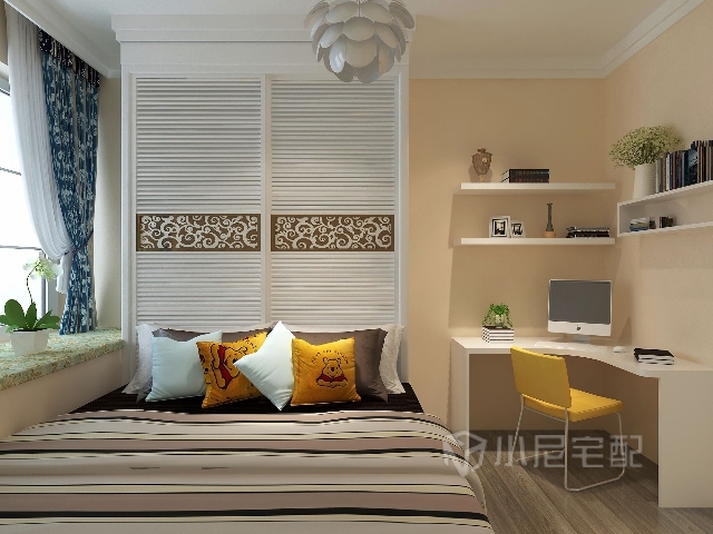 由于客餐廳采用都是白調(diào),所以臥室采用暖色調(diào),加以溫馨