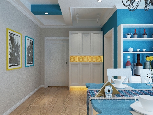 餐廳以海藍(lán)色為主,純白色勾勒出深海的氣息,就好像海中的白云自由自在的散步在海的中心,淡淡的漸行漸遠(yuǎn),生活也就如此平平凡凡。