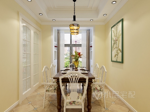 獨(dú)有的田園碎花鑲嵌在暖色餐廳中顯示異樣的安靜,溫暖不缺愛的旅途的懷念,生活有你而美好。