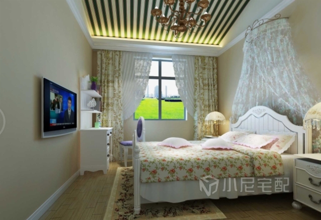 電視墻主要以茶鏡和暖色田園碎花為主,既簡單有落落大方,暖色燈光的照射下讓我們不經(jīng)意間回憶起了我們曾經(jīng)的美好,就似羅蘭的美一樣。