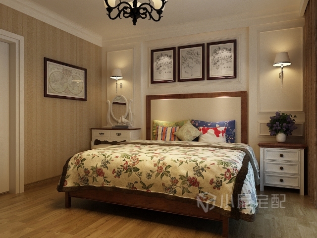 臥室一美式獨特的方式來表達,顯示業(yè)主的美好,舒適,安靜的反應(yīng)了業(yè)主的又有浪漫的追求。