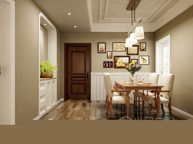 餐廳的裝飾墻顯示主人的性格,時而穩(wěn)重時而明朗,突出主人的喜好和安靜。