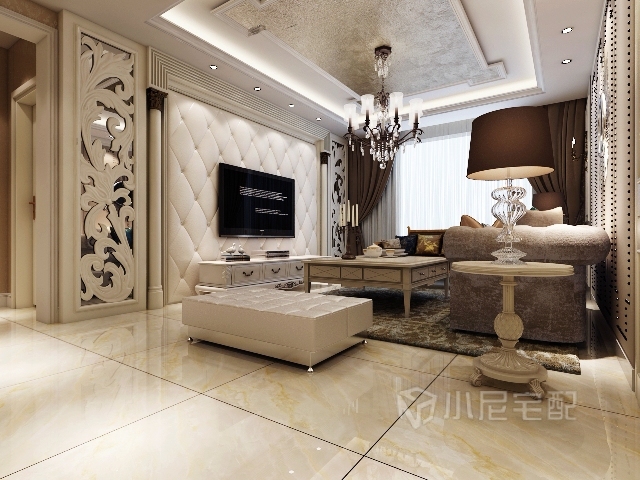 電視背景墻采用軟包,雕花的裝飾,顯示室主人對(duì)生活的追求