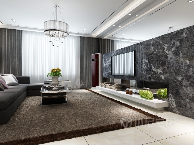 客廳電視墻采用石材和鏡面的處理,更具現(xiàn)代氣息