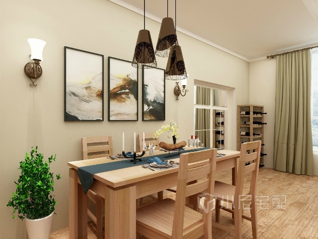 金屬長線吊燈,現(xiàn)代的裝飾畫,簡約的餐桌椅,增加了時(shí)尚感。