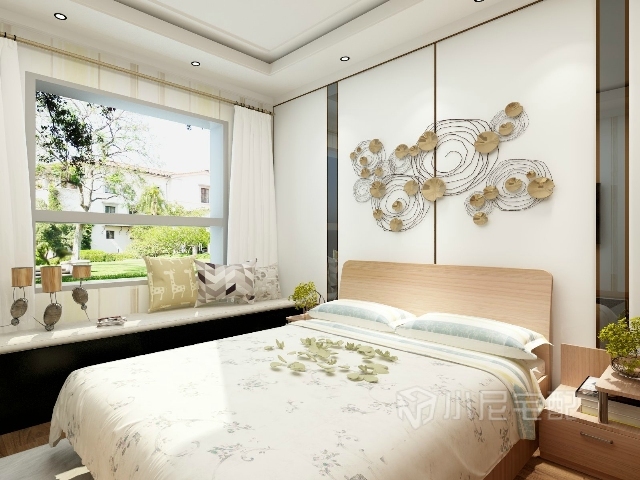 飄窗柜的設(shè)計(jì)增加了臥室的儲(chǔ)物功能,加上軟墊和抱枕,閑暇時(shí)坐在窗前也是一種享受。